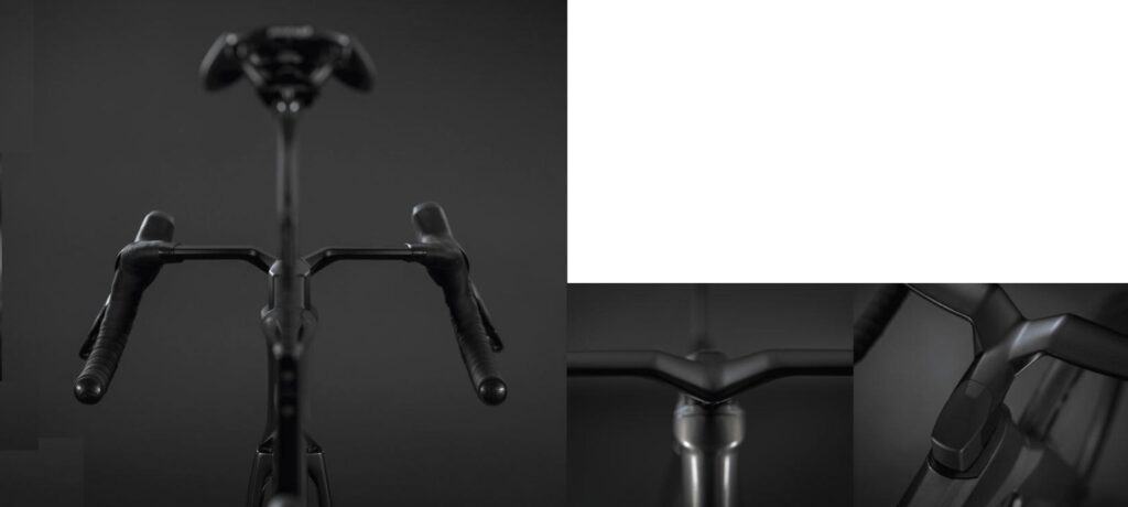 最新のUCI規則をフルに活用した「TEAM CW 1Pコックピット」を新開発。前モデル比で5Wの削減を実現し、全体の空力改善の半分をこの部位が叩き出しています。わずか320gという軽さと、ヘッドチューブへ深く沈み込むような一体開発により、空気の流れを劇的に最適化しました。