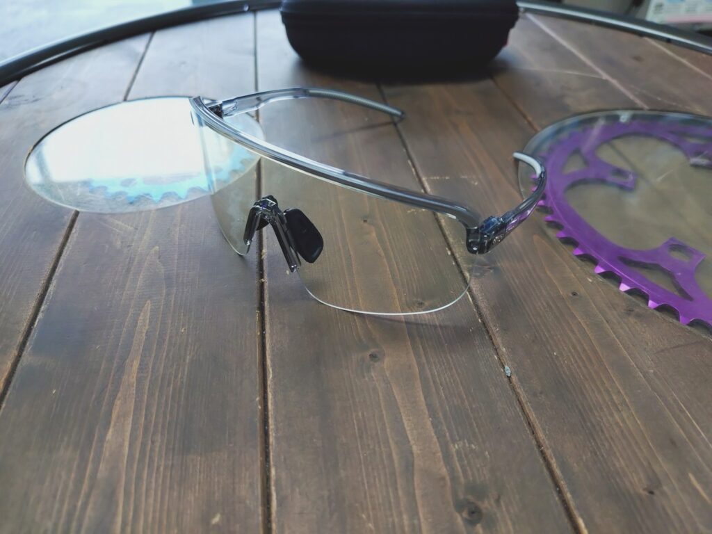 レンズには、歪みの少ないクリアな視界と優れた耐衝撃性を誇る高性能な**「NXT調光レンズ」**を採用。紫外線量に応じて透過率が80%から10%まで幅広く変化するため、早朝から日中、さらにトンネル内までこれ1本で対応可能です。