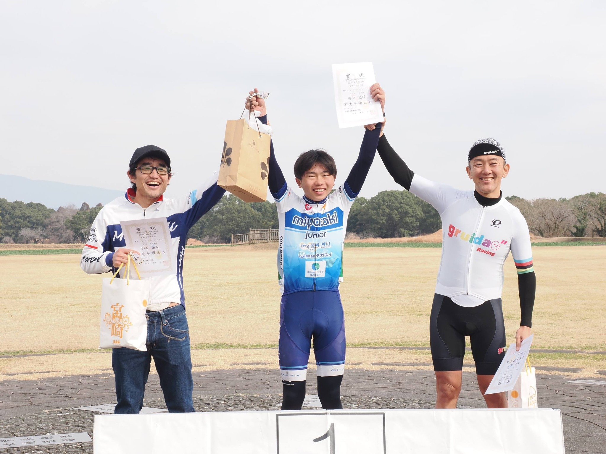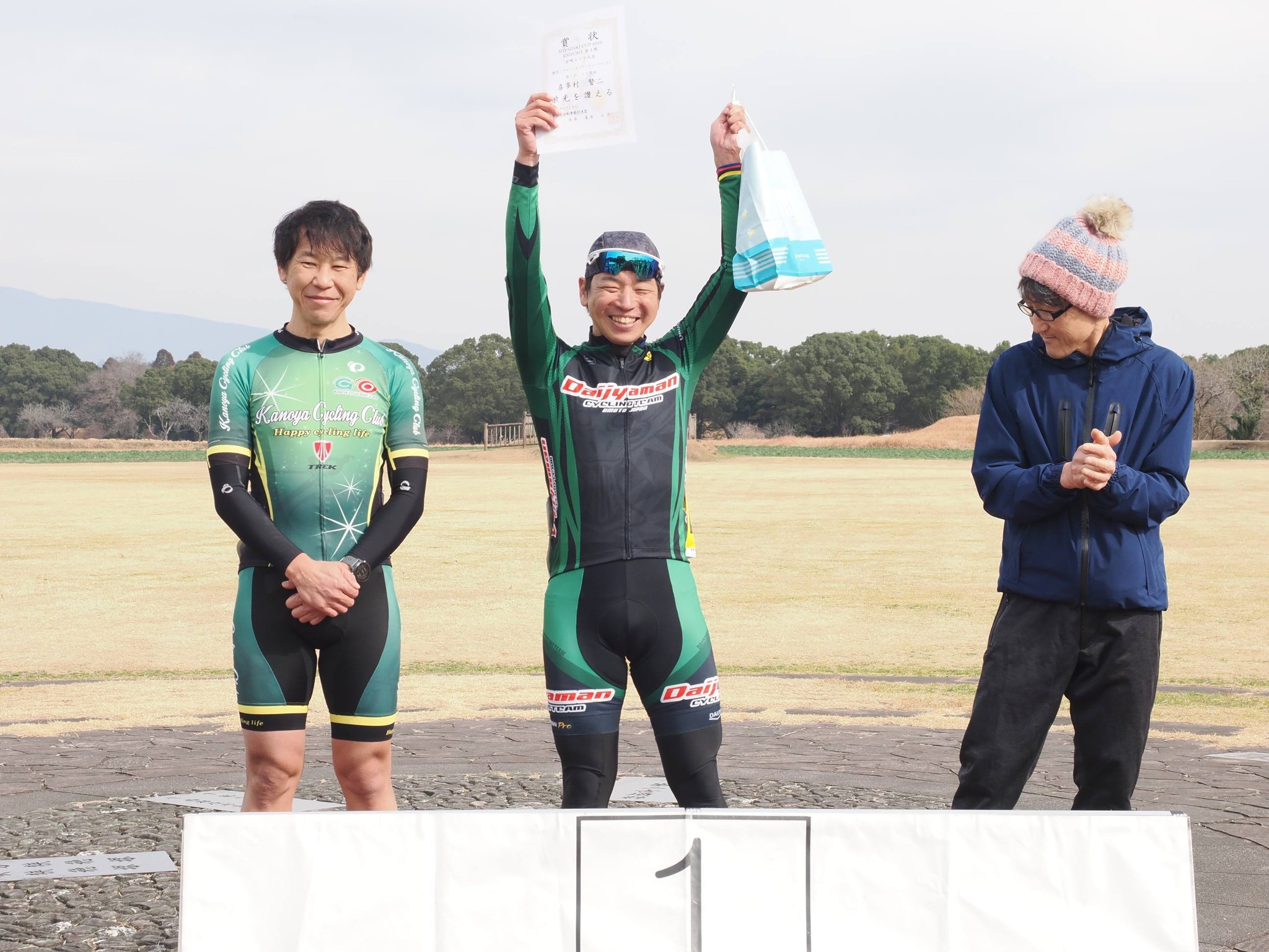 MIYAZAKI CAP 第四戦 投稿日時: 2026年1月19日 投稿者: admin MIYAZAKI CAP 第四戦 西都原エンデュロー大会に出場してきました。 私がエントリーしたのはC4(マスターズクラス)です。 1時間の競技時間のうち40分間先頭集団で頑張りましたが、身体の調子が思わしくなく短い上りでドロップしてしまいました。 競技終了後 表彰式では練習仲間が次々と表彰台へ登壇。 自分のことのように嬉しくなりました。 やはり練習はウソをつかないですね。 お疲れ様でした。そしておめでとうございます。