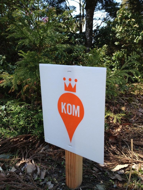 ところどころに設けられたヒルクライム計測のKOM(キング オブ マウンテン)ポイント。