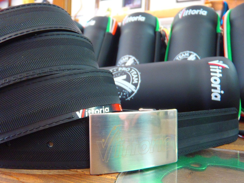 あの、Vittoria(ヴィットリア)より本革のベルトにコルサCX のトレッドを貼り付けたベルトが入荷してきました。限定品です。